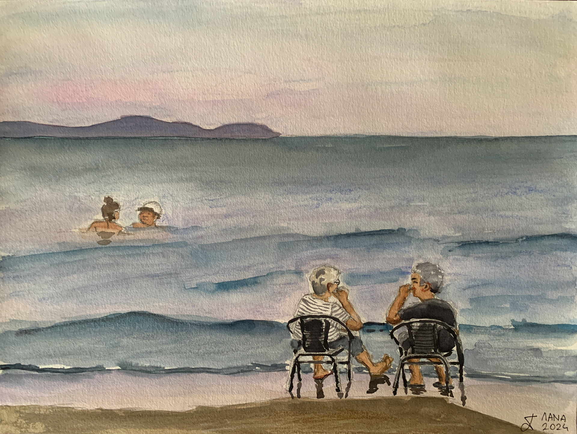 "Yiayiades or Mediterranean Grannies", watercolor on cold-pressed paper, 40x30 cm, 2024