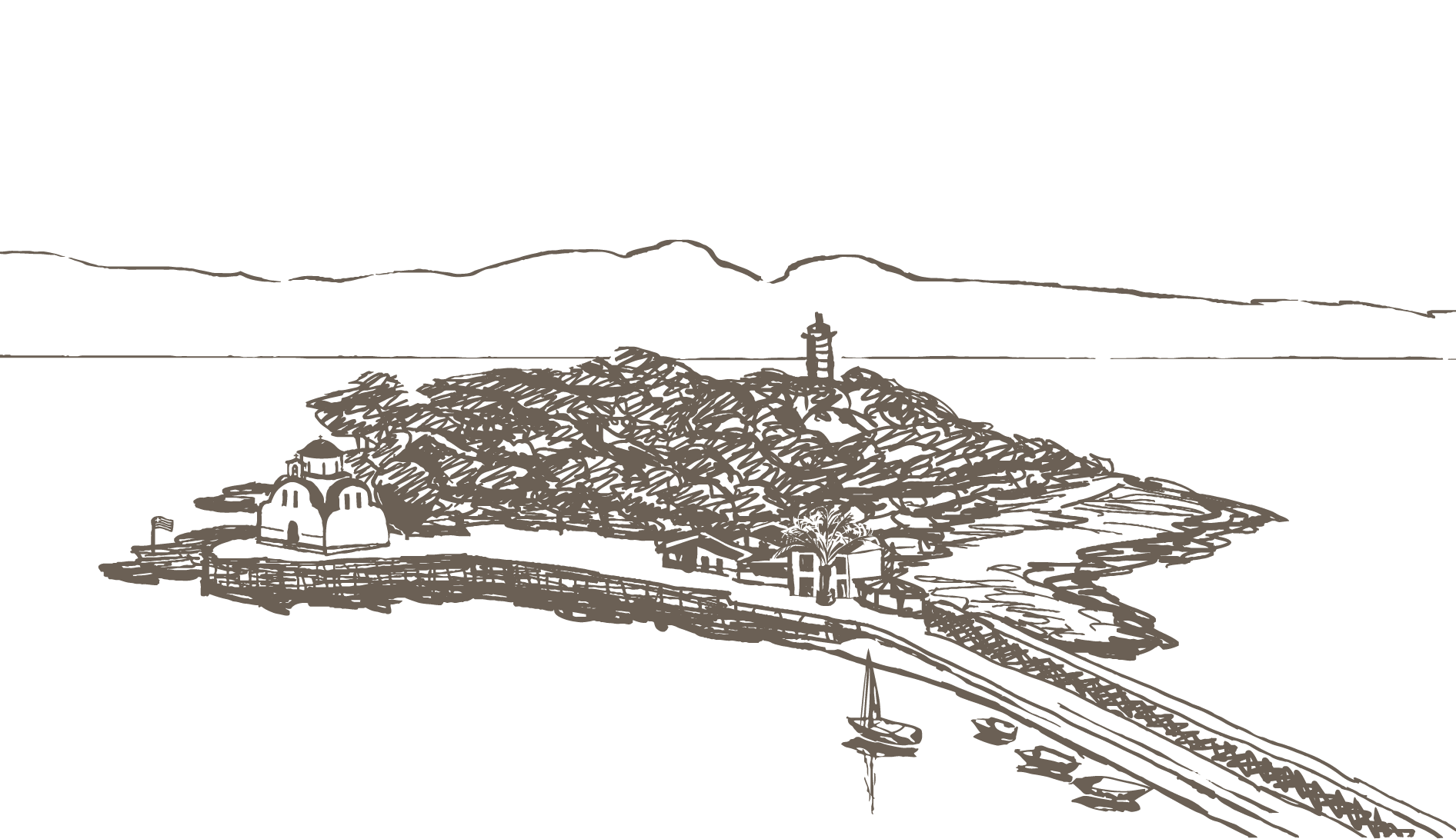 View of a small peninsula near Gytheio, Greece. Digital line work made in Procreate for a wedding invitation card, 2024