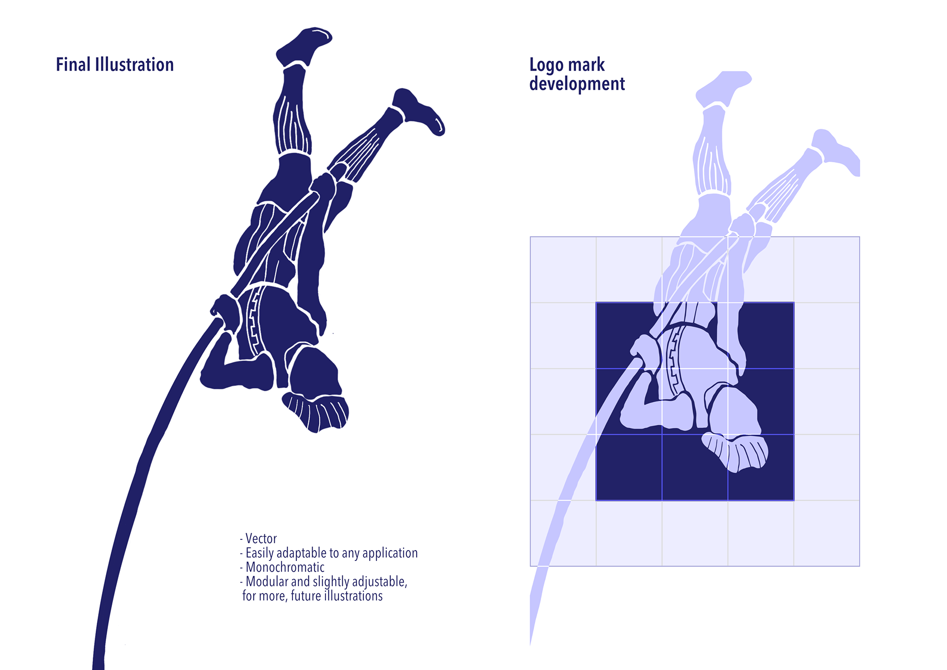 Since this is not a corporate identity, it allows more conceptual freedom. I went with a basic illustration, which is hand drawn and vectorized. It is highly adaptable and can be edited to showcase a different phase of the jumper’s flight.